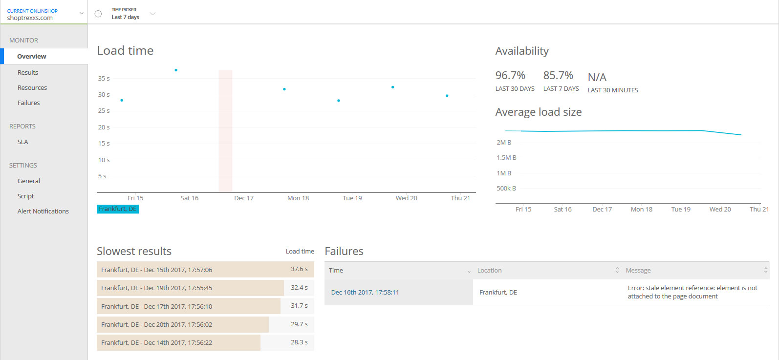 shopspeed ist eine Plattform, die unterschiedliche Monitoringtools für Ihren Onlineshop enthält, diesen kontrolliert, Fehlerquellen identifiziert und somit dauerhaft funktionsfähig hält. Wir verwenden einen realen Browser um Ihre Website und Ihre Transaction zu kontrollieren. Dadurch erhalten Sie immer die neusten Informationen über Ihre Website aus Kundensicht. Das Monitoring kann von weltweit verteilten Standorten durchgeführt werden. Diese befinden sich in den wichtigsten Städte der Kontinente.